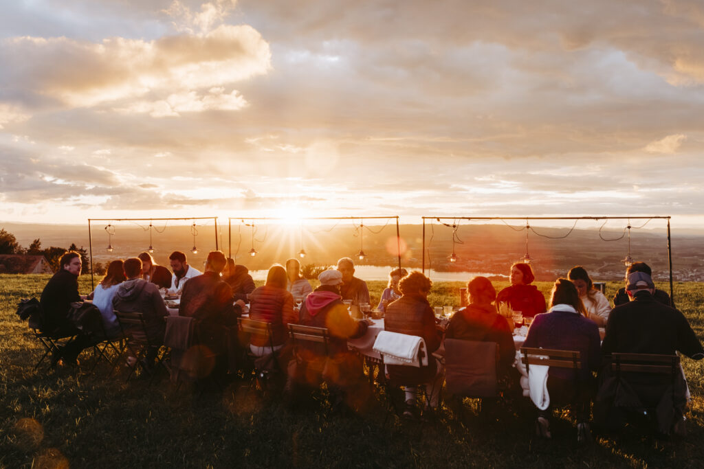 Was für ein gelungenes Dankesfest! Unter freiem Himmel, mit atemberaubendem Blick auf See und Berge, durften unsere Gäste einen unvergesslichen Abend erleben. Das sanfte Licht des Sonnenuntergangs, das Klingen der Gläser und das Lachen unter Freunden schufen eine Atmosphäre, die man nicht planen kann – sie entsteht, wenn Menschen sich Zeit nehmen, das Leben zu feiern.